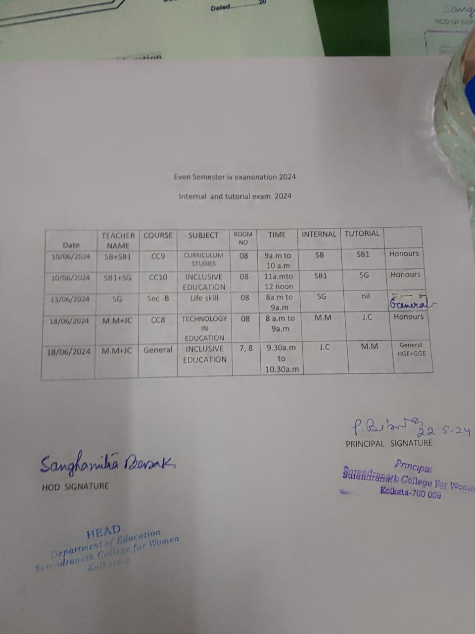 Internal and tutorial Examination 2024 (Semester-IV) on May 22, 2024 in College Notice, Examination Notice