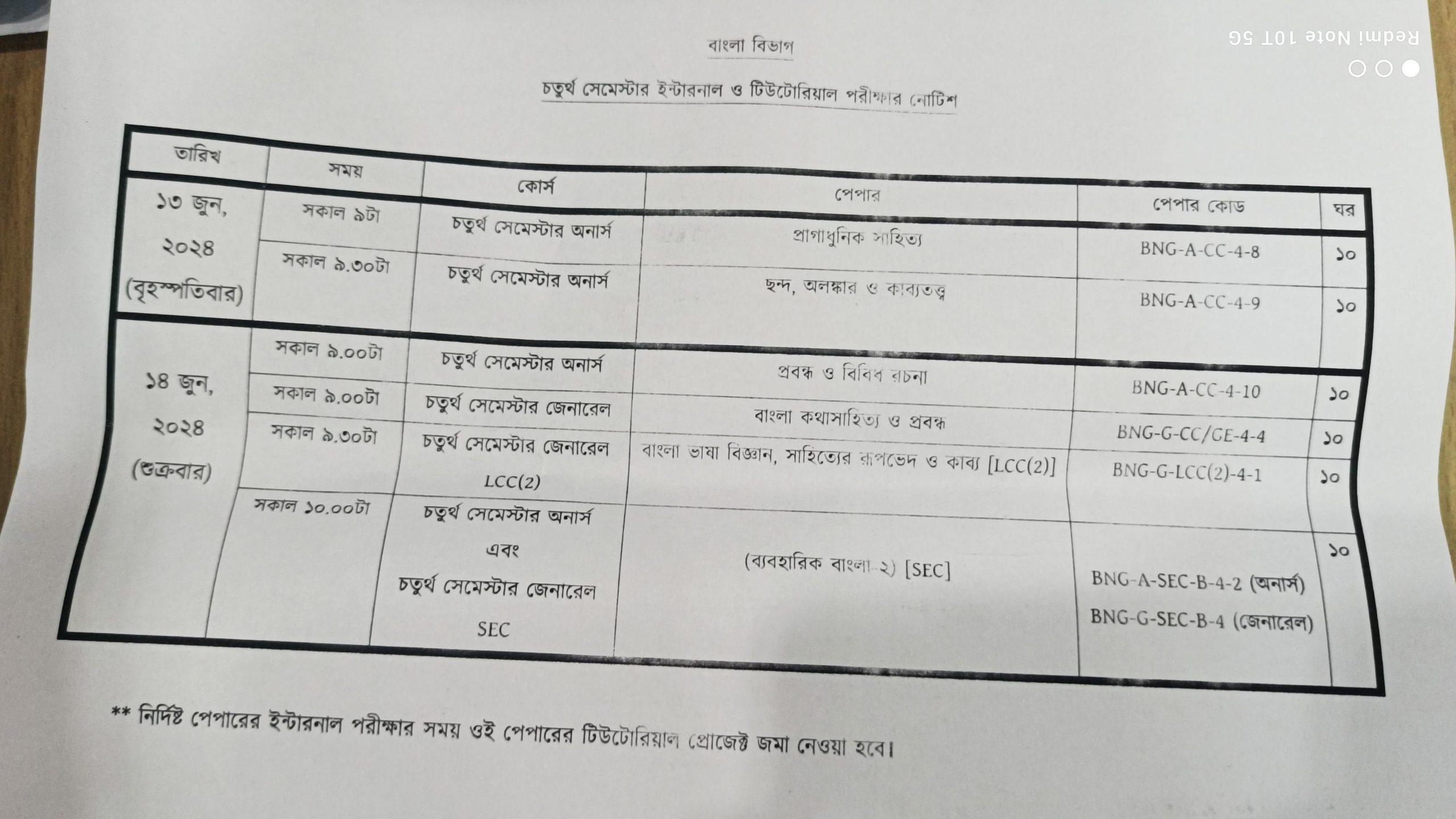 Notice for Internal and Tutorial Examination 2024 (Semester-IV) on May 29, 2024 in College Notice, Examination Notice