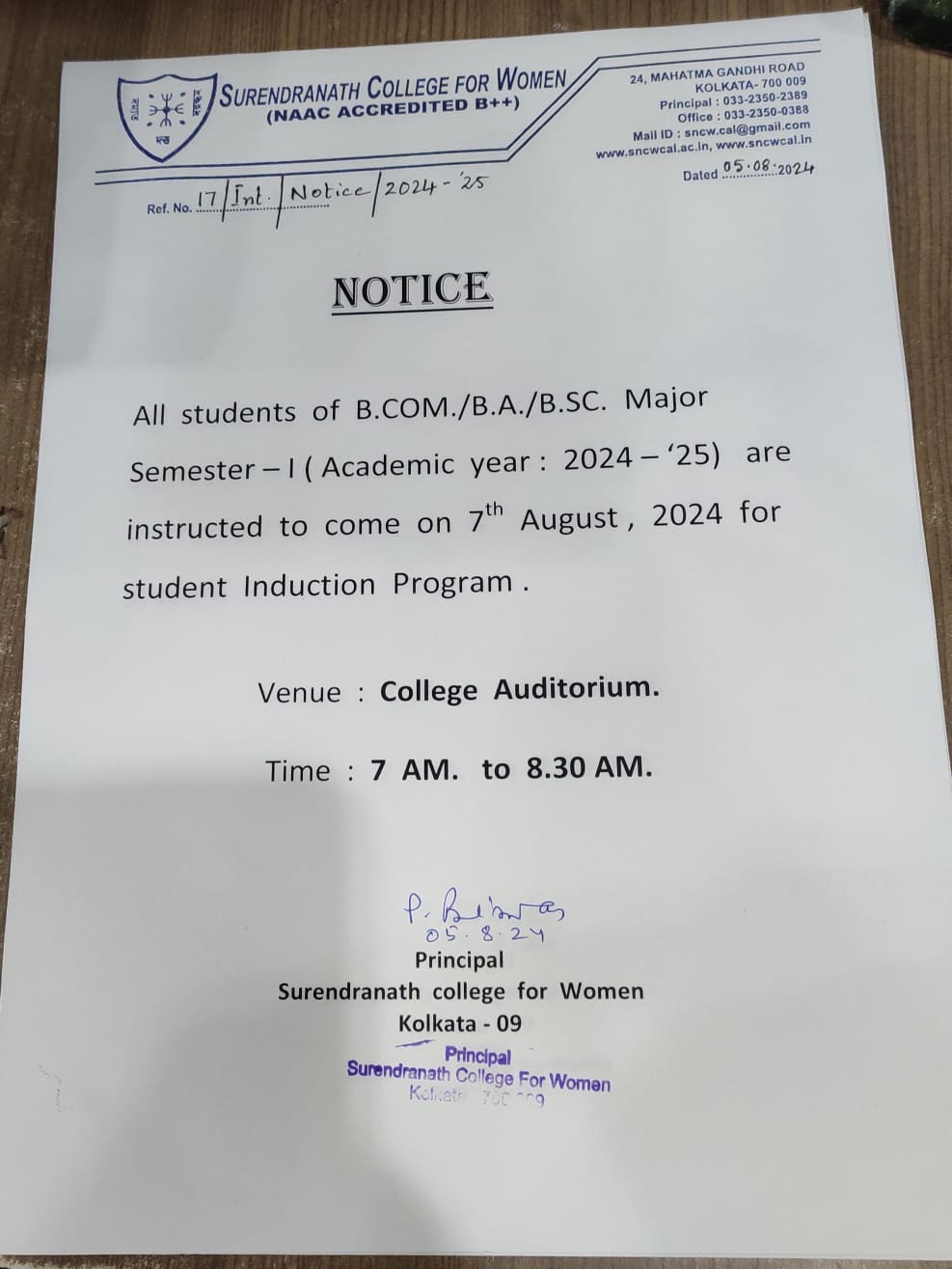 Notice for Semester-I Student Instructed Program (2024-25) on Aug 5, 2024 in Admission Notice, College Notice