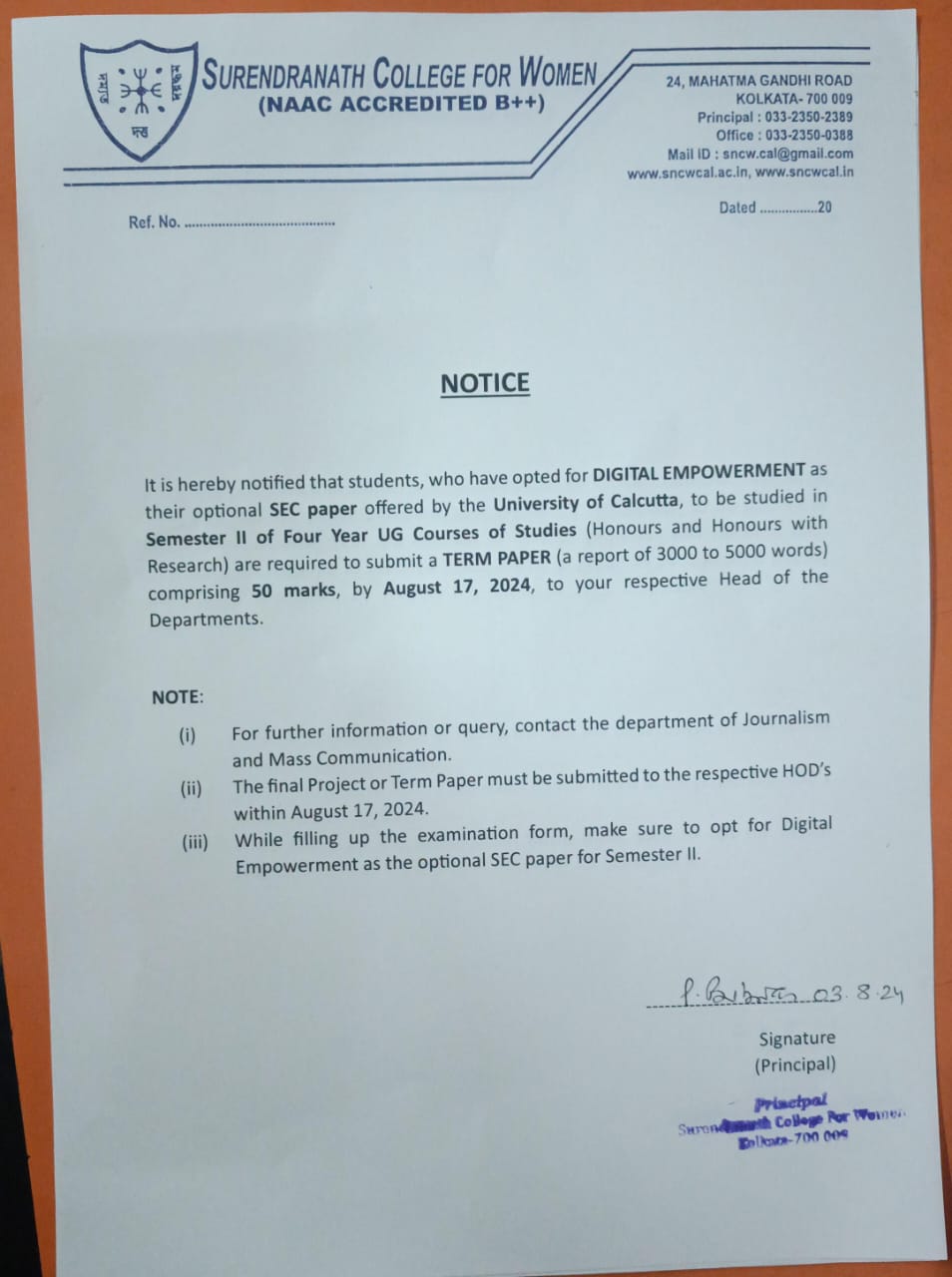 Notice for semester-I students for DIGITAL EMPOWERMENT