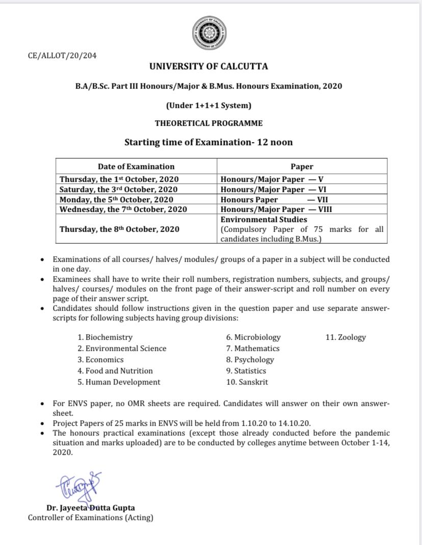NOTICE REGARDING EXAMINATION OF B.A & B.AC PART III HONOURS/MAJOR & B.MUS HONOURS