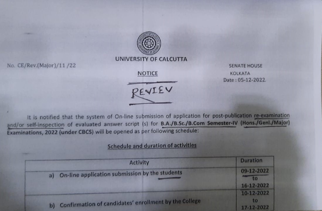 Review notice for the B.A. B.Sc Sem-4 examination 2022