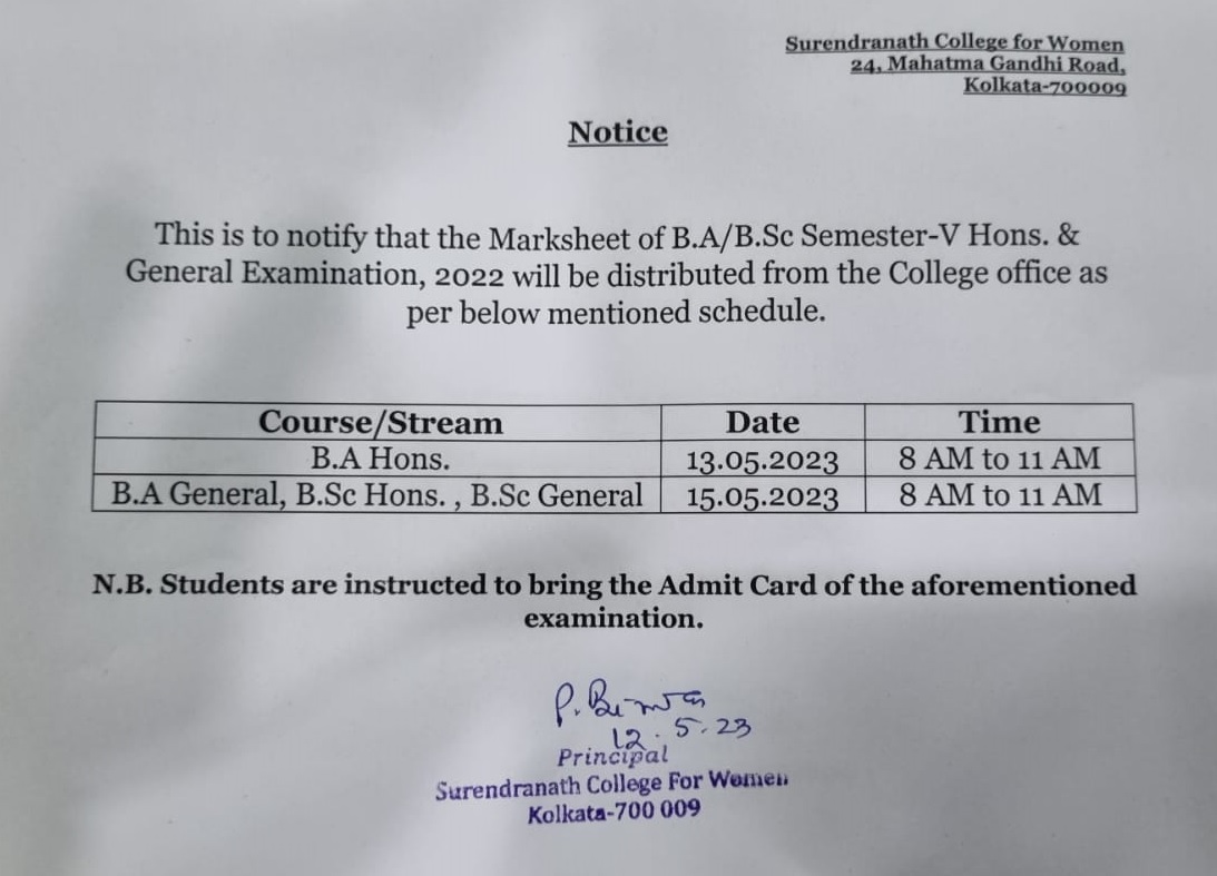 Semester-V Hons & General Examination Notice 2022 on May 12, 2023 in Admission 2022, Admission Notice, College Notice