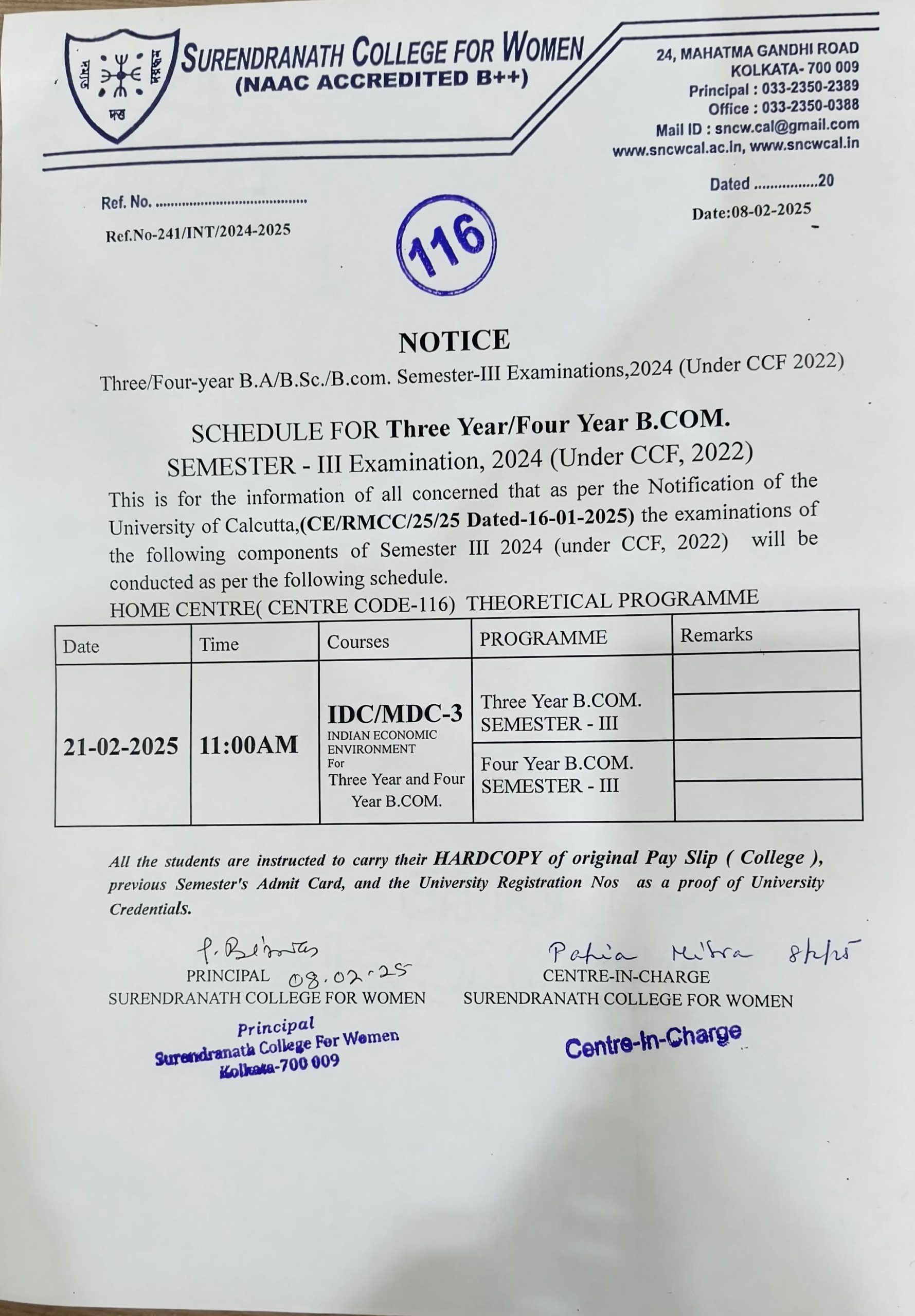 Three/Four-year B.A./B.Sc./B.Com. Semester-III Examinations, 2024 (Under CCF 2022) IDC/MDC-3 on Feb 8, 2025 in College Notice, Examination Notice
