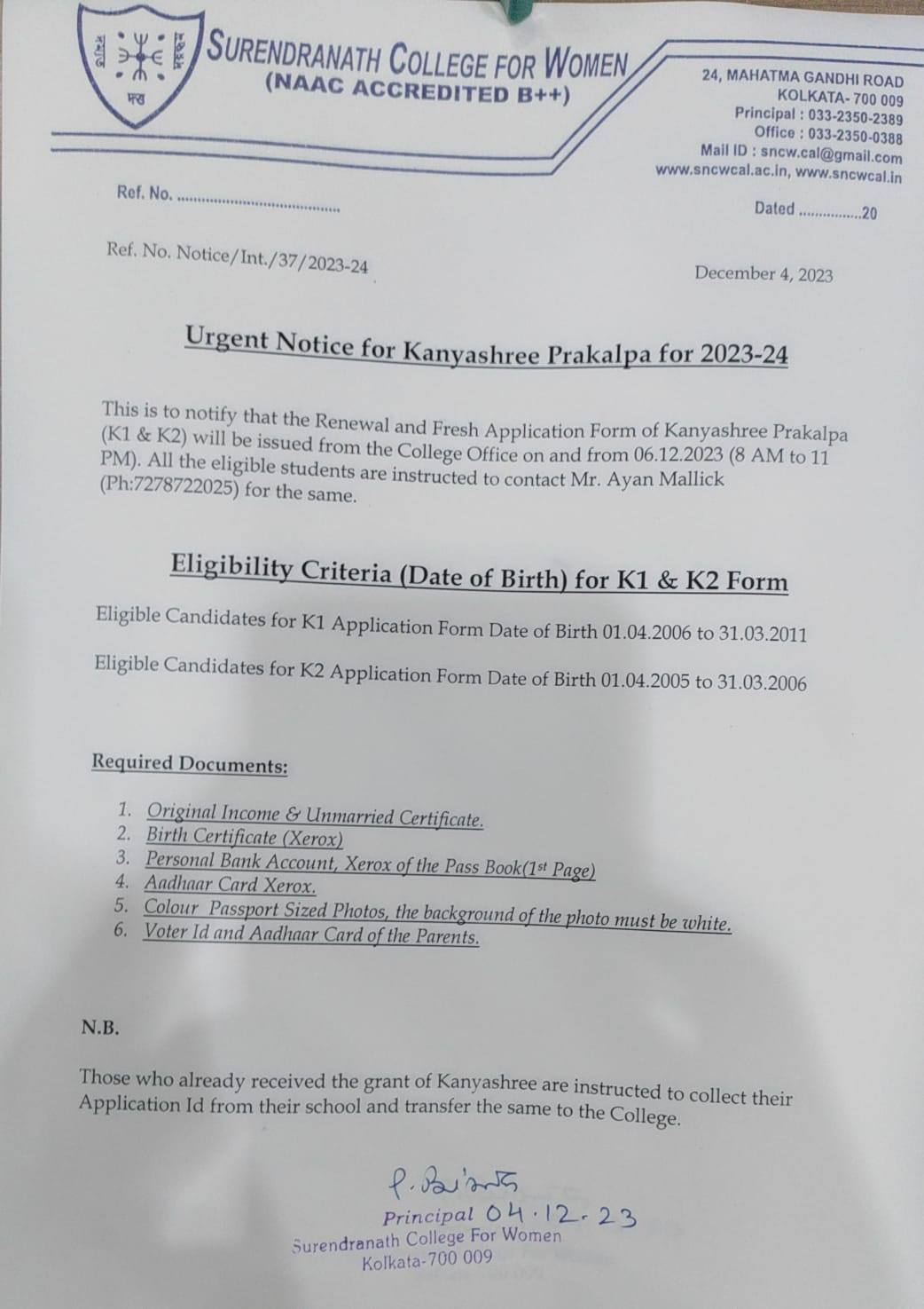 Urgent Notice for Kanyashree Prakalpa for 2023
