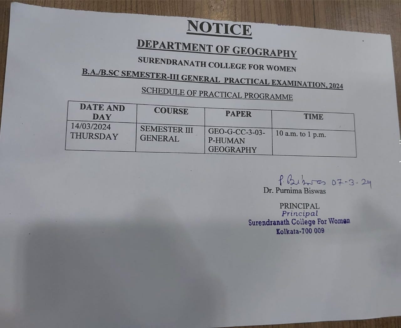 BA/ BSc Semester III General Practical Examination 2024 on Mar 7, 2024 in College Notice, Examination Notice