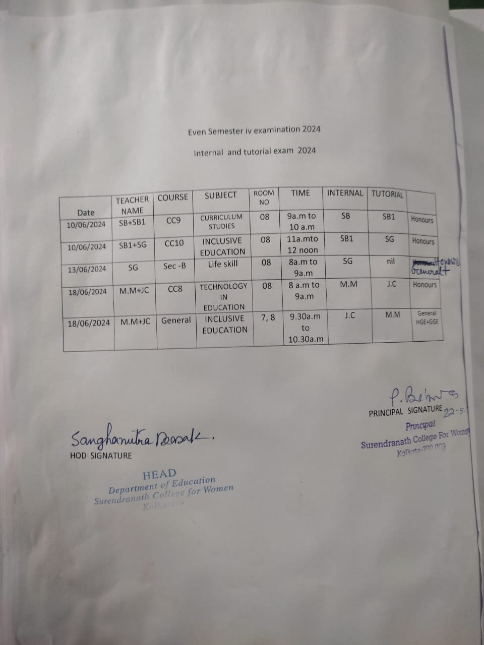 Internal and Tutorial Examination 2024 (Semester-IV) on May 28, 2024 in College Notice, Examination Notice