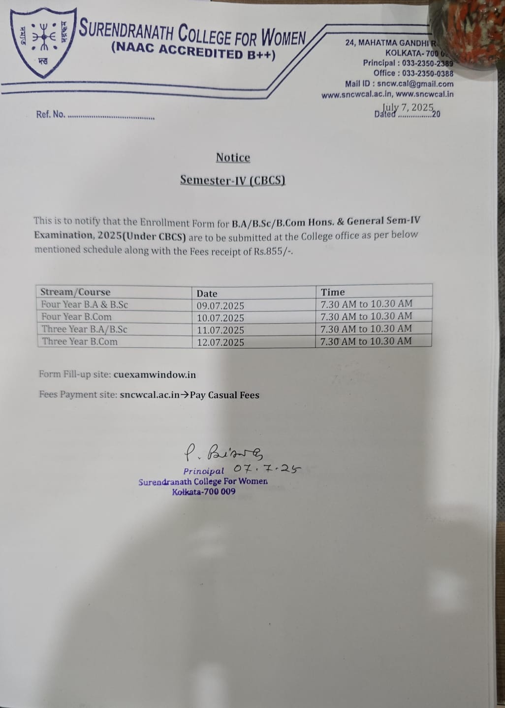 Notice for B.A/B.Sc/B.Com Hons.& General Semester-IV Examination,2025 (Under CBCS) on Jul 8, 2025 in College Notice, Examination Notice