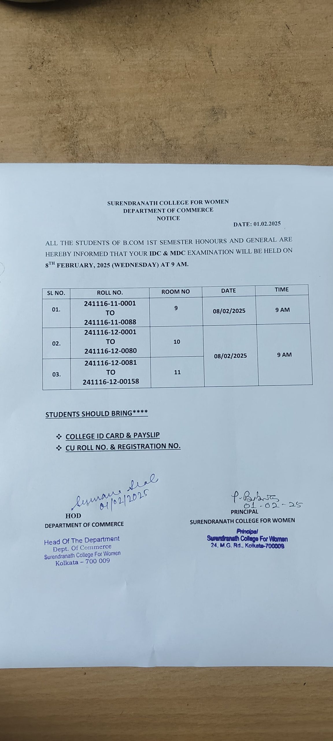 Notice for B.Com 1st Semester Honours and General Examination on Feb 1, 2025 in College Notice, Examination Notice