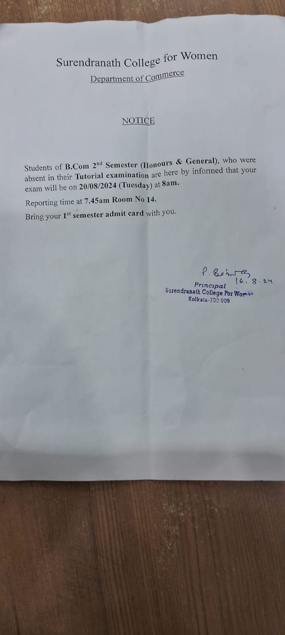 Notice for B.Com 2nd Semester (Honours & General)Tutorial Examination on Aug 16, 2024 in College Notice, Examination Notice