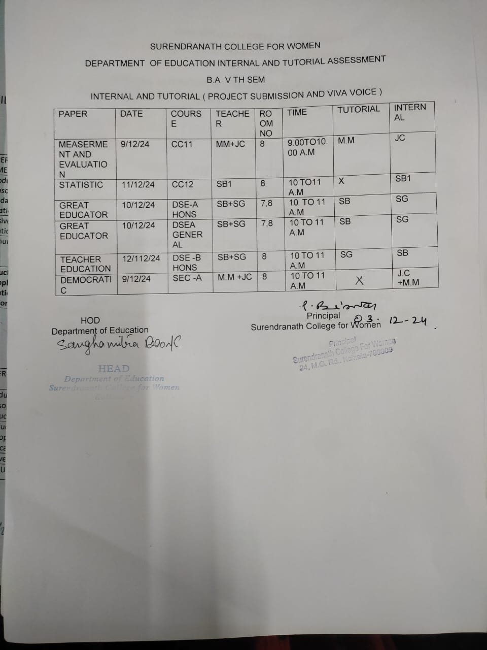 Notice for Internal and Tutorial Assessment B.A SEM-V