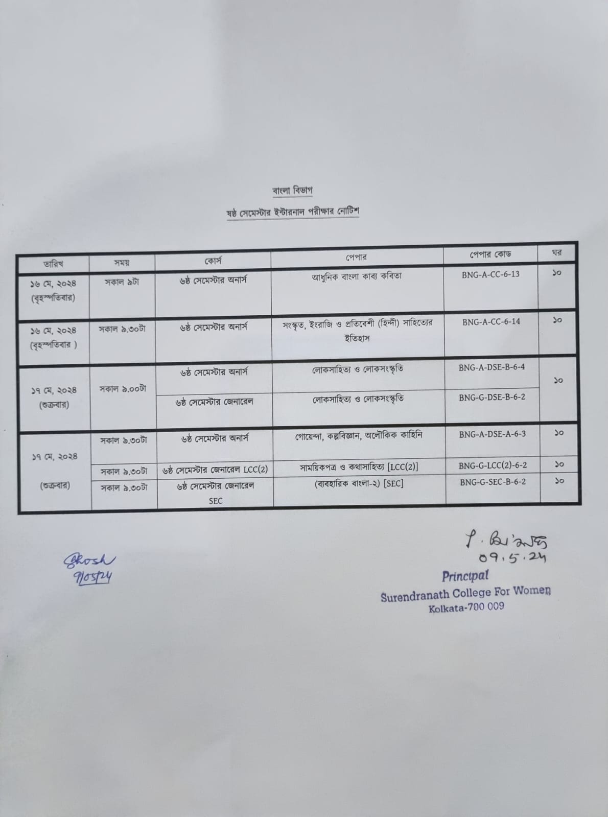Notice for Internal Examination Department of Bengali on May 9, 2024 in College Notice, Examination Notice