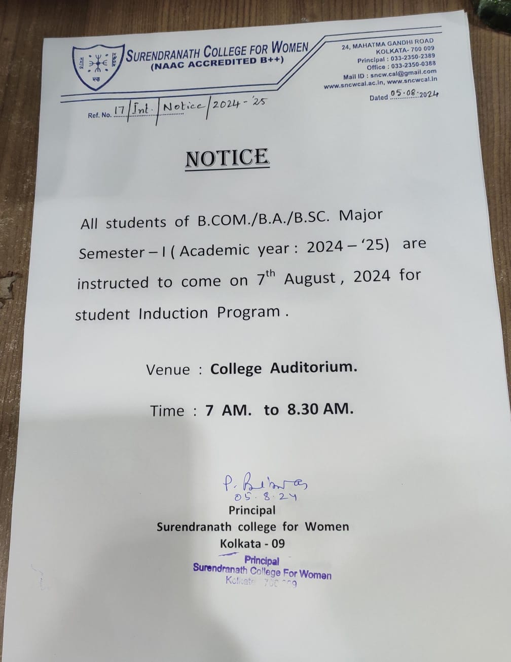 Notice for Semester-I Student Instructed Program (2024-25) on Aug 5, 2024 in Admission Notice, College Notice