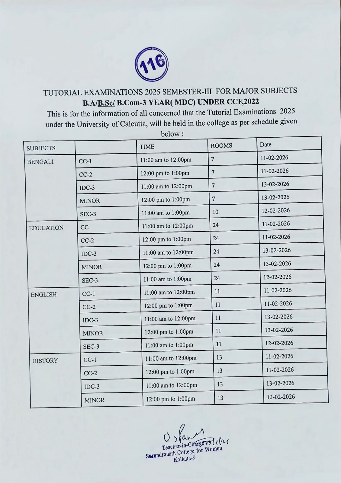 Notice for Tutorial Examination 2025 Semester-III for major Subjects B.A./B.Sc./B.Com.-3 Year(MDC) Under CCF,2022 on Jan 28, 2026 in Admission Notice, College Notice, Commerce, Examination Notice, Program and Events