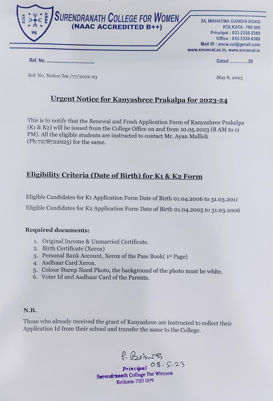 Urgent Notice for Kanyashree Prakalpa 2023-24